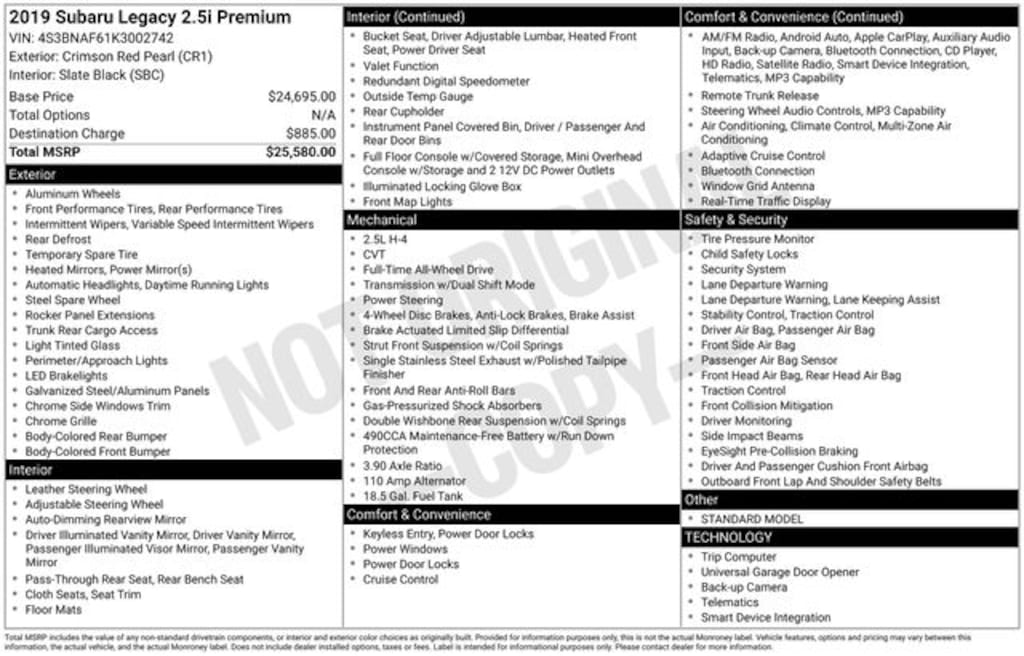 Used 2019 SubaruLegacy 2.5i