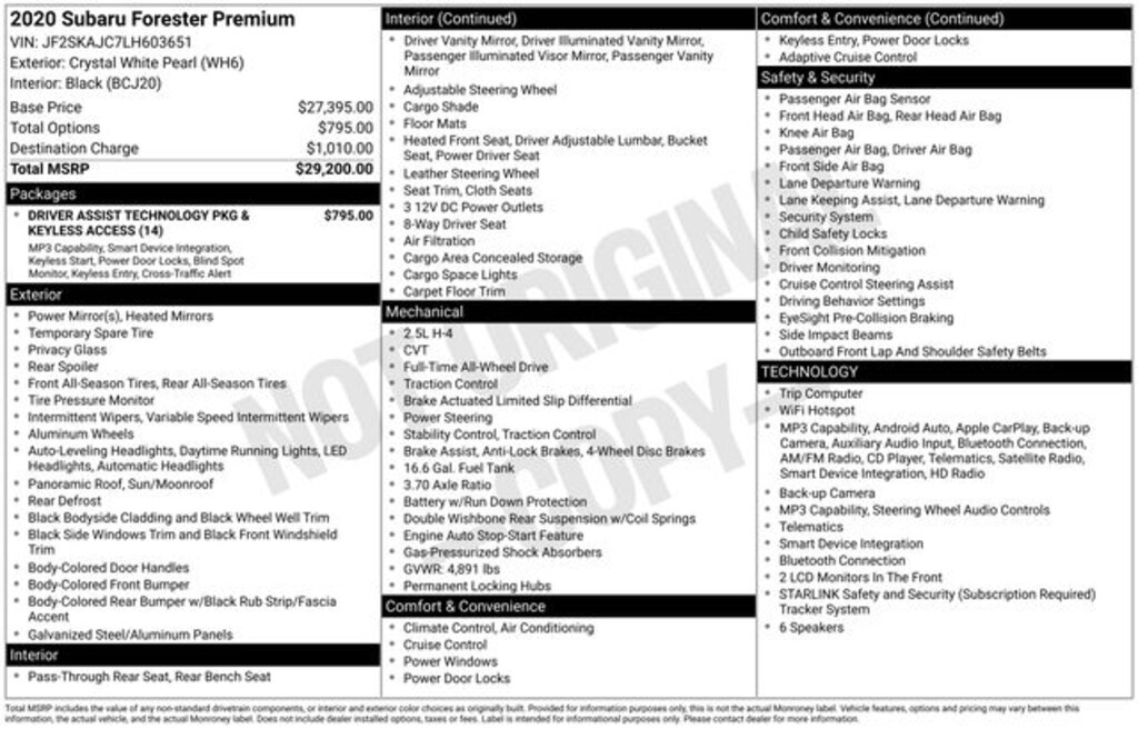 VIN# JF2SKAJC7LH603651Stock# 9800A